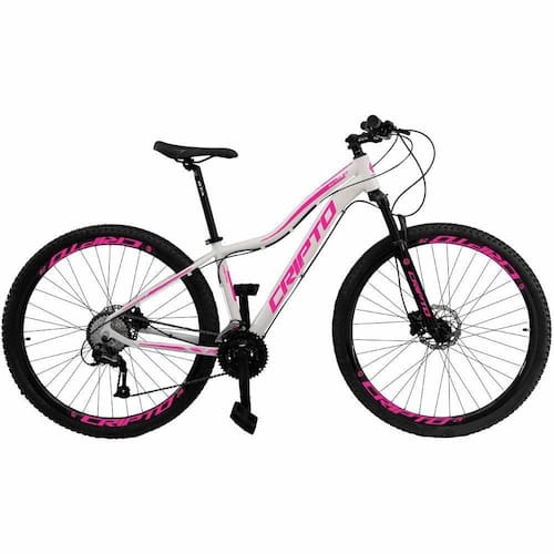 Suspensão: Dianteira | Modalidade: Mountain Bike | Aro: 29 | Marchas: 24 Cor: Branco/Rosa