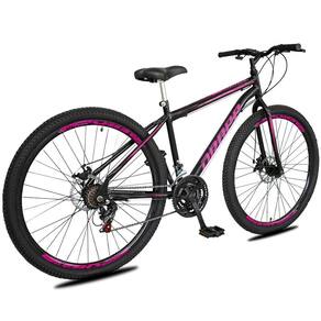 Aro: 29 | Marchas: 21 | Modalidade: Passeio | Suspensão: Sem Suspensão | Material do Quadro: Quadro Dropp Sport em Aço | Modelo e Composição do Garfo: Garfo Rígido em Aço | Marca e Modelo do Sistema de Câmbio: Câmbio Dianteiro imp. 3v imp / Câmbio Traseiro imp. 7v imp / Trocador de Marchas Grip Shift - 21v - imp. | Marca e Composição do Pedivela: Pedivela 3 Coroas em Aço | Modelo e Composição do Freio: Freio a Disco 160mm Preto - MECÂNICO | Material da Roda: Aros Aero 36 Furos Folha Dupla Alumínio | Pneus: Pneu 29 (Imp.) | Marca e Composição dos Cubos: Cubos Rosca 36f em aço | Modelo e Composição do Guidão: Guidão Curvo em Aço | Marca e Composição do Selim: Selim Sport | Material do Canote: Aço 22.2 | Importante: Bicicleta para passeios e trilhas leves, não indicada para manobras radicais e trilhas pesadas / Consulte o tamanho de quadro adequado à sua altura antes de realizar a compra. | Montagem do Equipamento: A montagem é de responsabilidade do cliente, sugerimos que seja efetuada por uma oficina especializada. | Garantia do Fabricante: 90 dias. A garantia será validada para as bicicletas montadas e revisadas por uma oficina especializada e é referente apenas ao primeiro proprietário | Informação Relevante: Pode haver alguma diferença de tonalidade entre a imagem e o produto real, por conta do tratamento de imagens e a calibração de cores do monitor | Baterias são necessárias?: Não | Principais Características do Produto 1: Conforme descrição | Principais Características do Produto 2: Conforme descrição | Certificação de teste externa: Não existe | Componentes incluídos: Conforme descrição | Fabricante: SOUTH BIKE | Fonte de energia: Humana | Certificado de Conformidade do Produto: Não existe Cor: Preto+rosa