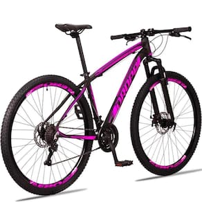 Tipo de Freio: Hidráulico | Importante: Bicicleta para passeios e trilhas leves, não indicada para manobras radicais e trilhas pesadas | Material do Quadro: Alumínio | Material do Canote: Alumínio | Material da Roda: Aros Aero 36 Furos Folha Dupla Alumínio | Modelo e Composição do Guidão: Guidão Mega Over Reto Expandido em Alumínio | Montagem do Equipamento: Deve ser realizada em uma loja especilizada | Garantia do Fabricante: 3 meses | Modelo e Composição do Garfo: Garfo / Suspensão Aro 29 PRETO 80MM | Marca e Composição do Pedivela: Pedivela Reduzido em Alumínio | Pneus: Pneu (Imp.) 29x2.10 Cravo Baixo | Gênero: Masculino Cor: Preto+rosa