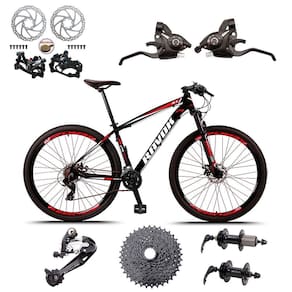 A bicicleta Ravok foi desenvolvida para quem quer realizar passeios e pegar trilhas. Com seu quadro em alumínio 6061, fornece segurança e leveza no seu pedal.O modelo possui 27 velocidades, freio a disco mecânico que proporciona segurança nas frenagens, cubo cassete em ALUMINIO e suspensão dianteira para um passeio confortável em diversos tipos de terrenos.Disponível em diversas cores que garante um estilo próprio para você.Veja abaixo a descrição detalhada dos componentes:QUADRO: Alumínio 6061.SUSPENSÃO: Aro 29ALAVANCA/TROCADOR: rápid fire- 27vCÂMBIO TRASEIRO: 9vCÂMBIO DIANTEIRO: 3vCASSETE: 9V indexPEDIVELA: Triplo em aço revestido 24/34/42 indexCORRENTE: index 9vFREIOS: Disco mecânicoCUBOS: 36 Furos CASSETE em ALUMÍNIO esferados com brocagemAROS: Aero em alumínio parede dupla 36fPNEUS: Aro 29 x 2,10 MTB cravo baixoCÂMARA DE AR: 29 x 1.95 bico grossoMOVIMENTO CENTRAL: Roller 122.5 Preto SeladoMOVIMENTO DE DIREÇÃO: Aheadset Preto semi integradoESPAÇADOR: Aheadset Em AlumínioGUIDÃO: expandido em alumínio - PretoSUPORTE DE GUIDÃO: Preto em Alumínio 31,8mmCANOTE DE SELIM: Preto em Alumínio 27,2x350mmBANCO / SELIM: Sport PU MTBABRAÇADEIRA: 31,8mm em Alumínio PretoPEDAL: Nylon plataforma pretoOBS: IMAGEM MERAMENTE ILUSTRATIVA, BIKE VAI CONFORME DESCRIÇÃORECOMENDAÇÃO DE TAMANHOSAltura do ciclista: 1,65 até 1,71m Tamanho de quadro 15Altura do ciclista: 1,72 até 1,76m Tamanho de quadro 17Altura do ciclista: 1,77 até 1,82m Tamanho de quadro 19Altura do ciclista: 1,83 até 1,90m ou mais Tamanho de quadro 21MONTAGEM- A bicicleta é montada, porém, para acomodação na embalagem e transporte, algumas peças são enviadas desmontadas.- A instalação é de responsabilidade do consumidor, orientamos que seja efetuada por mão de obra especializada.- Por motivo de transporte e manuseio, pode haver a necessidade de efetuar uma revisão (câmbios, freios) ao receber o produto.GARANTIA - Fábrica / 3 MesesNÃO COBRE DEFEITOS POR MAU USO OU PELA MONTAGEM / REVISÃO INADEQUADA DO PRODUTO.- A garantia será validada para as bicicletas montadas e revisadas por uma oficina especializada e é referente apenas ao primeiro proprietário.- A garantia não se aplica para os itens de desgaste natural tais como: Pneu, câmaras, cabos, pastilhas de freio, centragem de aros, pintura do quadro, componentes da transmissão (corrente, engrenagens do pedivela, engrenagens do cassete ou roda livre)..OUTRAS OBSERVAÇÕES:- As fotos do anúncio são feitas com quadros do tamanho 17\'\'.- A geometria do quadro (desenho) pode mudar conforme o tamanho escolhido alterando a inclinação do tubo superior.- Pode haver alguma diferença de tonalidade entre a imagem e o produto real, por conta do tratamento de imagens e a calibração de cores da sua tela.- Dependendo o lote do produto, algumas peças podem ter cores diferentes da imagem.