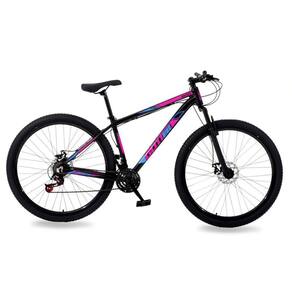 Com pé de apoio: Não | Com impacto positivo: Sim | Peso máximo suportado: 120 | Idade: Adultos | Câmbios Traseiros: 7vl | Aro: 29 | Marchas: 21 | Com cesto: Não | Quantidade de Velocidades: 21 | Material do quadro: Alumínio | É dobrável: Não | Linha: MTB | Modelo: 21vl Moutain bike freio a disco - Rocker Cor: Preto/Rosa Azul