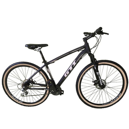 Bike aro 29, com quadro Gti Roma nova na caixa a pronta entrega, produto com ótima qualidade e acabamento, possui 27 marchas com sistema de alavancas rapid fire que a cada clique uma marcha é trocada, garfo com suspensão, sistema de freio a disco mecânico. Bicicleta pré montada, vai precisar apenas fixar a roda dianteira, guidão, selim e pedais. Segue abaixo características da bike: Quadro 29 Gti Roma alumínio / Garfo 29 suspensão curso 60mm / Suporte do guidão em alumínio preto / Guidão 31.8mm em alumínio preto / Canote do selim 27.2 em alumínio preto Sem Carrinho / Selim Sport Preto / Abraçadeira do Selim alumínio Preto / Aros Aero Parede dupla reforçado / Raios Pretos / Cubos em Alumínio k7 Pretos / Pneus 29 com cravo / Movimento central selado rolamentado / Freios a disco Mecânicos com discos inox 160mm / Manetes de Freio Alumínio (não integrada com alavanca) / Alavancas Semi-automáticas Rapid Fire / Câmbio Traseiro Sunrun / Câmbio Dianteiro Sunrace ou Yamada / Corrente Index 9v / Pedivela Alumínio Index / Pedal Plataforma Nylon preto / Cassete 9v sunrun Gta / Recomendamos que seja feita uma revisão por um técnico após a recebimento do produto, para reajuste e regulagem, pois no transporte pode acontecer de alguma peça soltar ou desregular / Fotos meramente ilustrativas