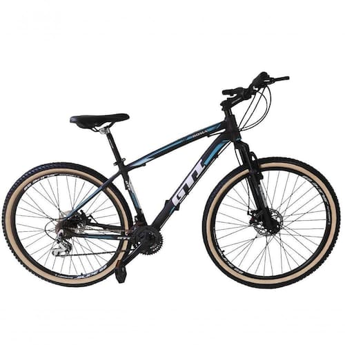Bicicleta Aro 29 Gti Roma Alumínio 27v Freio Disco Mecânico Pneu Faixa Bege - Preto-azul Tam.19