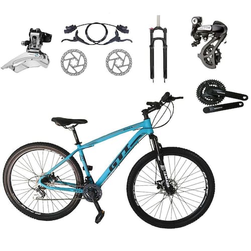Bike aro 29, com quadro GTI Roma, nova na caixa a pronta entrega, produto com ótima qualidade e acabamento, possui 24 marchas com sistema de alavancas rapid fire que a cada clique uma marcha é trocada, câmbio dianteiro SHIMANO ALTUS e traseiro SHIMANO ALTUS , garfo com suspensão e sistema de trava para melhor performance, sistema de freio a disco hidráulico, pneus com cravo baixo para uso em terra e asfalto. Bicicleta pré montada, vai precisar apenas fixar a roda dianteira, guidão, selim e pedais. Seguem abaixo características da bike:Quadro 29 GTI Roma em Alumínio / Garfo 29 suspensão com Trava no Ombro / Suporte do guidão em alumínio preto / Guidão 31.8mm em alumínio preto / Canote do selim 27.2 em alumínio preto Com carrinho / Selim Sport Preto / Abraçadeira do Selim alumínio Preto / Aros Aero Parede dupla reforçado / Raios Pretos / Cubos em Alumínio Pretos com blocagens / Pneus 29 com cravo / Movimento central selado rolamentado / Freios a disco Hidráulicos Com discos inox 160mm / Alavancas Semi-automáticas Rapid Fire GTA/SUNRUN / Câmbio Traseiro SHIMANO ALTUS 24V M310 / Câmbio Dianteiro SHIMANO ALTUS M313 / Corrente Index DTO/PACO/FSC / Pedivela SHIMANO Ty301 Tourney / Pedal Plataforma Nylon preto / Cassete k7 GTA 11/32 cromado