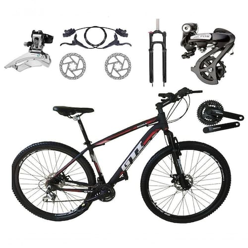 Bike aro 29, com quadro GTI Roma, nova na caixa a pronta , produto com ótima qualidade e acabamento, possui 24 marchas com sistema de alavancas rapid fire que a cada clique uma marcha é trocada, câmbio dianteiro SHIMANO ALTUS e traseiro SHIMANO ALTUS , garfo com suspensão e sistema de trava para melhor performance, sistema de freio a disco hidráulico, pneus com cravo baixo para uso em terra e asfalto. Bicicleta pré montada, vai precisar apenas fixar a roda dianteira, guidão, selim e pedais.Seguem abaixo características da bike: