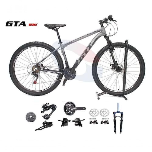 Bike aro 29, com quadro GTI Roma, nova na caixa a pronta , produto com ótima qualidade e acabamento, possui 18 marchas com sistema de coroa dupla e 9 catracas (conhecido como 2x9), alavancas rapid fire que a cada clique uma marcha é trocada, câmbio dianteiro e traseiro Sunrun , Catraca do tipo k7 de encaixe, garfo com suspensão e sistema de trava para melhor performance, sistema de freio a disco mecânico, pneus com cravo baixo para uso em terra e asfalto. Bicicleta pré montada, vai precisar apenas fixar a roda dianteira, guidão, selim e pedais.Segue abaixo características da bike: