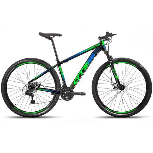 Bicicleta Aro 29 Gtsprom5 Urban Câmbio Shimano Freio A Disco 24 Marchas - 19-PRETO COM VERDE E AZUL
