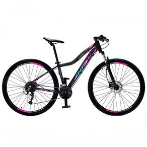 Material do Quadro: Aluminio | Suspensão: Dianteira | Aro: 29 | Modalidade: Mountain Bike | Marchas: 24 Cor: Preto/Rosa e Azul