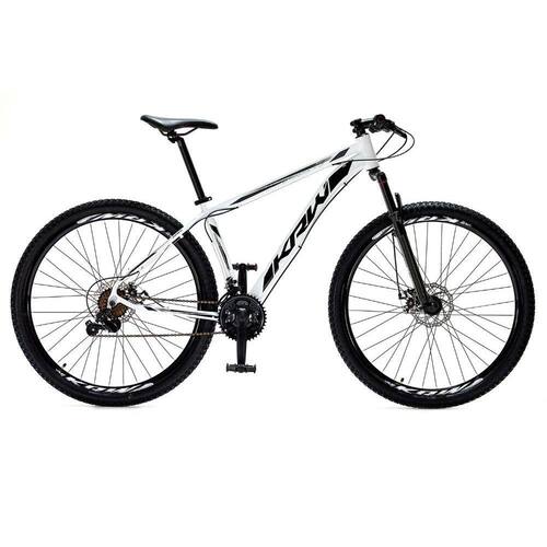 Bicicleta Aro 29 Krw Alumínio Shimano 24 Velocidades Freio a Disco Suspensão Mountain Bike S4 - 17"-Branco/Preto