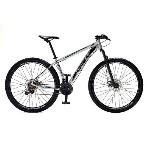 Bicicleta Aro 29 Krw Alumínio Shimano 24 Velocidades Freio a Disco Suspensão Mountain Bike S4 - 19"-Prata/Preto