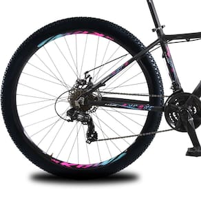 Bicicleta Aro 29 KRW Alumínio Shimano TZ 24 Velocidades Freio a Disco Suspensão Mountain Bike KR9 - 15.5-Preto/Rosa e Azul