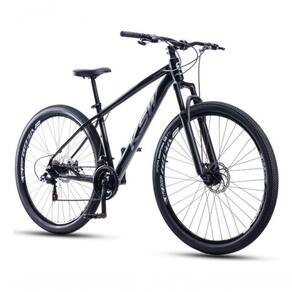A suspensão dianteira auxilia na absorção de impactos em terrenos irregulares, e o pedivela triplo em aço garante maior eficiência durante o uso. Os pneus 29x2.10 oferecem boa aderência, e o selim ergonômico MTB proporciona conforto em pedaladas prolongadas.