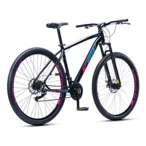 Bicicleta Aro 29 Ksw 21 Vel Shimano Alumínio Freio Disco Xlt100 Mtb Preto/rosa/azul 19