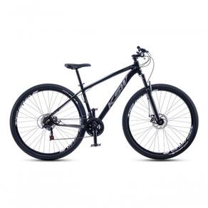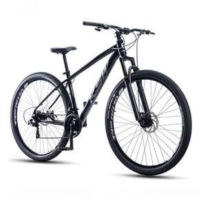 A suspensão dianteira auxilia na absorção de impactos em terrenos irregulares, e o pedivela triplo em aço garante maior eficiência durante o uso. Os pneus 29x2.10 oferecem boa aderência, e o selim ergonômico MTB proporciona conforto em pedaladas prolongadas.