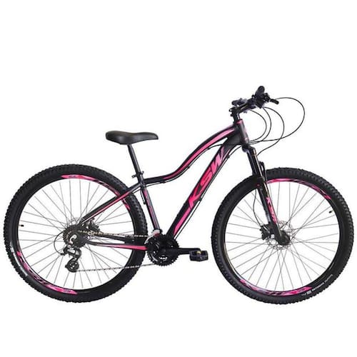 Bike Feminina aro 29, com quadro Ksw Mwza, nova na caixa a pronta entrega, produto com ótima qualidade e acabamento, possui Freios a disco, Câmbio dianteiro e traseiro Shimano, 21 marchas com sistema de alavancas rapid fire que a cada clique uma marcha é trocada, garfo com suspensão. Bicicleta pré montada, vai precisar apenas fixar a roda dianteira, guidão, selim e pedais.