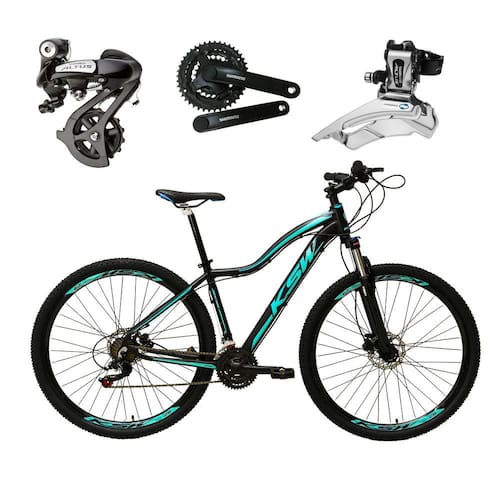 Bike aro 29, com quadro KSW MWZA, nova na caixa a pronta entrega, produto com ótima qualidade e acabamento, possui 27 marchas com sistema de alavancas rapid fire que a cada clique uma marcha é trocada, câmbio dianteiro SHIMANO ALTUS e traseiro SHIMANO ALÍVIO M3100 SGS, garfo com suspensão e sistema de trava para melhor performance, sistema de freio a disco hidráulico, pneus com cravo baixo para uso em terra e asfalto. Bicicleta pré montada, vai precisar apenas fixar a roda dianteira, guidão, selim e pedais.Segue abaixo características da bike:Quadro 29 KSW MWZA em AlumínioGarfo 29 suspensão ABSOLUTE com Trava no Ombro e regulagemSuporte do guidão em alumínio pretoGuidão 31.8mm em alumínio pretoCanote do selim 27.2 em alumínio preto Com carrinhoSelim Sport PretoAbraçadeira do Selim alumínio PretoAros Aero Parede dupla reforçadoRaios PretosCubos em Alumínio Pretos com blocagensPneus 29 com cravoMovimento central selado rolamentadoFreios a disco Hidráulicos com discos inox 160mmAlavancas Semi-automáticas Rapid Fire GTA/SUNRUNCâmbio Traseiro SHIMANO ALÍVIO M3100 SGS 27VCâmbio Dianteiro SHIMANO ALTUS 9vCorrente Index DTO/PACOPedivela SHIMANO Mt101 ou M371 27v(DEPENDERÁ DA DISPONIBILIDADE NO ESTOQUE)Pedal Plataforma Nylon pretoCassete k7 GTA Sunrun 11/32 cromada