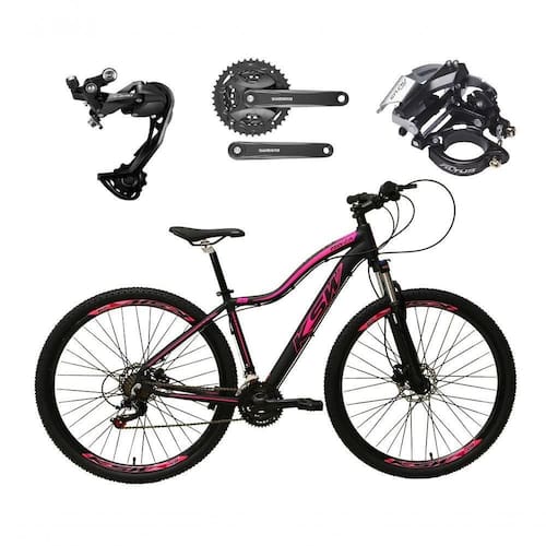Bicicleta Aro 29 Ksw Mwza Feminina Câmbio Shimano Alívio E Altus 27v F/hidráulico Garfo Trava - Preto/rosa Tam.15