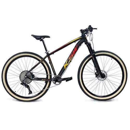 Bicicleta Aro 29 Ksw Xlt 12v Garfo com Trava K7 11/50 Freios Hidráulicos Kit 1x12 - Preto\Vermelho\Amarelo - TAMANHO 15