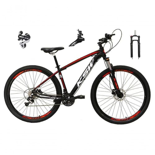 Bicicleta Aro 29 Ksw Xlt 24v Câmbio Shimano Acera K7 Garfo Trava Freio A Disco - Preto/vermelho/branco Tam.15