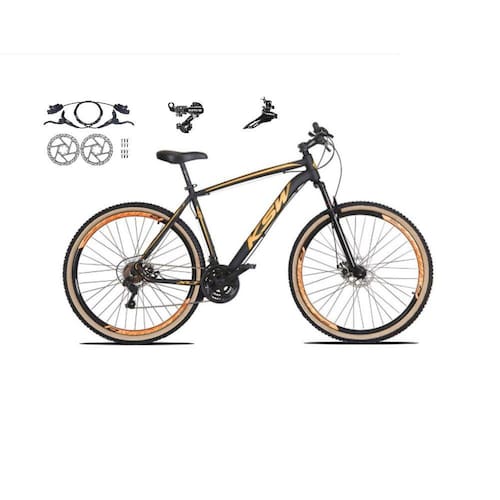 Bicicleta aro 29 Ksw Xlt 24v Câmbios Shimano Freios Hidráulicos Garfo com Suspensão Pneu Faixa Bege - Preto\Laranja - TAMANHO 19