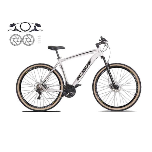 Bicicleta Aro 29 Ksw Xlt 24v Freios a Disco Hidráulicos Garfo Suspensão Pneu com Faixa Bege - Branco - TAMANHO 19