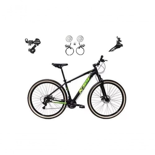 Bicicleta Aro 29 Ksw Xlt 24v K7 Câmbios Shimano Freio Hidráulico Garfo Trava Pneu Faixa - Preto/verde Tam.15