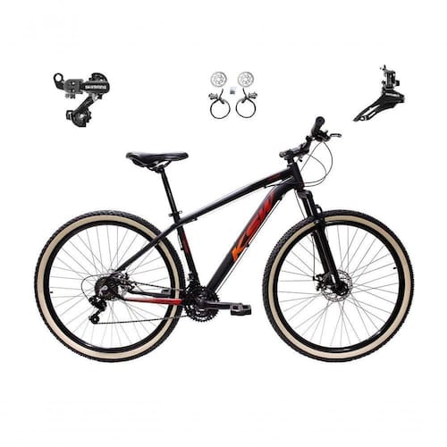 Bicicleta Aro 29 Ksw Xlt 24v K7 Câmbios Shimano Freio Hidráulico Garfo Trava Pneu Faixa - Preto/vermelho/laranja Tam.17