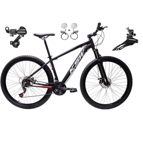Bicicleta Aro 29 Ksw Xlt 24v K7 Câmbios Shimano Freio Hidráulico Garfo Trava - Preto/vermelho/branco Tam.17