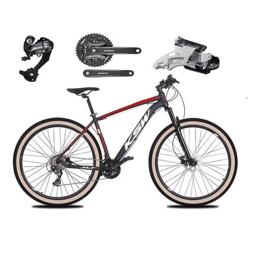 Bike aro 29, com quadro ksw xlt, nova na caixa a pronta entrega, produto com ótima qualidade e acabamento, possui 27 marchas com sistema de alavancas rapid fire que a cada clique uma marcha é trocada, câmbio dianteiro shimanto altus e traseiro shimano altus (M370 ou M2000), dependerá da disoponibilidade no estoque), garfo com suspensão e sistema de trava para melhor performance, sistema de freio a disco hidráulico, pneus com cravo baixo para uso em terra e asfalto. Bicicleta pré montada, vai precisar apenas fixar a roda dianteira, guidão, selim e pedais. Segue abaixo características da bike: Quadro 29 ksw xlt em Alumínio / Garfo 29 suspensão absolute com Trava no Ombro / Suporte do guidão em alumínio preto / Guidão 31.8mm em alumínio preto / Canote do selim 27.2 em alumínio preto Com carrinho / Selim Sport Preto / Abraçadeira do Selim alumínio Preto / Aros Aero Parede dupla reforçadao / Raios Pretos / Cubos em Alumínio K7 Pretos com blocagens / Pneus 29 com cravo / Movimento central selado rolamentado / Freios a disco Hidráulicos om discos inox 160mm / Alavancas Semi-automáticas Rapid Fire gta ou sunrun / Câmbio Traseiro shimano altus 27V (M370 ou M2000, dependerá da disoponibilidade no estoque) / Câmbio Dianteiro shimano altus / Corrente Index dto / Pedivela shimano Mt101 ou M371 27v(DEPENDERÁ da disponibilidade no estoque) / Pedal Plataforma Nylon preto / Cassete k7 gta 11/32 cromada