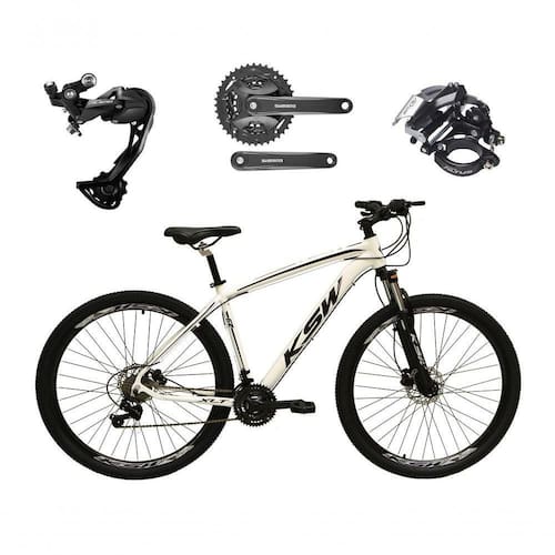 Bike aro 29, com quadro KSW XLT, nova na caixa a pronta , produto com ótima qualidade e acabamento, possui 27 marchas com sistema de alavancas rapid fire que a cada clique uma marcha é trocada, câmbio dianteiro SHIMANO ALTUS e traseiro SHIMANO ALÍVIO M3100 SGS, garfo com suspensão e sistema de trava para melhor performance, sistema de freio a disco hidráulico, pneus com cravo baixo para uso em terra e asfalto. Bicicleta pré montada, vai precisar apenas fixar a roda dianteira, guidão, selim e pedais.Segue abaixo características da bike: