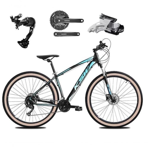 Bike aro 29, com quadro ksw xlt, nova na caixa a pronta , produto com ótima qualidade e acabamento, possui 27 marchas com sistema de alavancas rapid fire que a cada clique uma marcha é trocada, câmbio dianteiro shimano altus e traseiro shimano alívio M3100 sgs, garfo com suspensão e sistema de trava para melhor performance, sistema de freio a disco hidráulico, pneus com cravo baixo para uso em terra e asfalto. Bicicleta pré montada, vai precisar apenas fixar a roda dianteira, guidão, selim e pedais. Segue abaixo características da bike:
