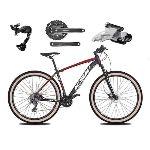 Bicicleta Aro 29 Ksw Xlt Alívio E Altus 27v Freio Hidráulico Garfo Trava Pneu Faixa - Preto-vermelho-branco Tam.21
