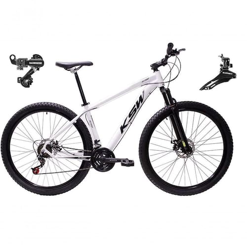 Bike aro 29 em alumínio, nova na caixa a pronta , produto com ótima qualidade e acabamento, possui 24 marchas com sistema de alavancas rapid fire que a cada clique uma marcha é trocada, garfo com suspensão, sistema de freio a disco mecânico, câmbio dianteiro e traseiro Shimano Tz. Bicicleta pré montada, vai precisar apenas fixar a roda dianteira, guidão, selim e pedais.
