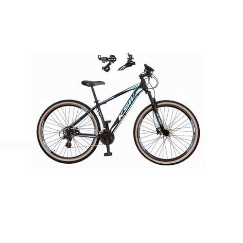 Bicicleta Aro 29 Ksw Xlt Alumínio 24v Câmbios Shimano Garfo Suspensão Pneu com Faixa Bege - Preto\Azul - TAMANHO 15