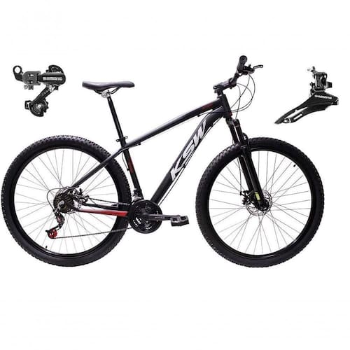 Bicicleta Aro 29 Ksw Xlt Alumínio 24v Câmbios Shimano Garfo Suspensão - Preto/vermelho/branco Tam.21
