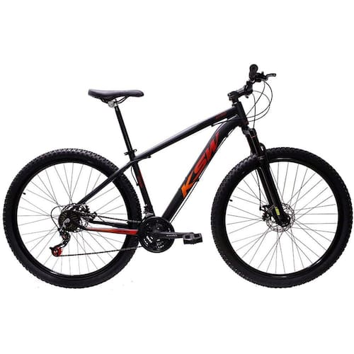 Bicicleta Aro 29 Ksw Xlt Alumínio 27v Freio a Disco Mecânico Garfo com Suspensão - Preto\Vermelho\Laranja - TAMANHO 15