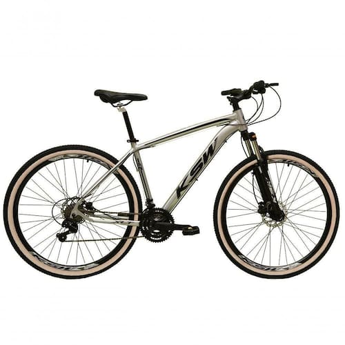 Bicicleta Aro 29 Ksw Xlt Alumínio 27v Freio Disco Mecânico Garfo Suspensão Pneu Faixa - Prata Tam.17