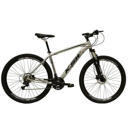 Bicicleta Aro 29 Ksw Xlt Alumínio 27v Freio Disco Mecânico Garfo Suspensão - Prata Tam.17