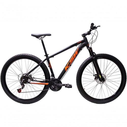 Bike aro 29, com quadro Ksw Xlt nova na caixa a pronta , produto com ótima qualidade e acabamento, possui 27 marchas com sistema de alavancas rapid fire que a cada clique uma marcha é trocada, garfo com suspensão, sistema de freio a disco mecânico. Bicicleta pré montada, vai precisar apenas fixar a roda dianteira, guidão, selim e pedais. Segue abaixo características da bike: