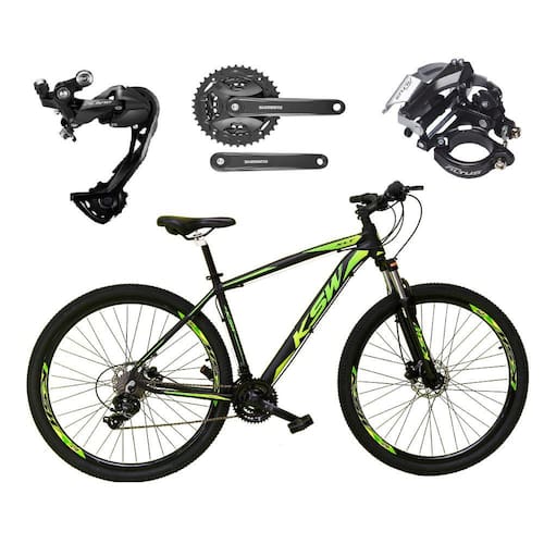 Bike aro 29, com quadro KSW XLT, nova na caixa a pronta entrega, produto com ótima qualidade e acabamento, possui 27 marchas com sistema de alavancas rapid fire que a cada clique uma marcha é trocada, câmbio dianteiro SHIMANO ALTUS e traseiro SHIMANO ALÍVIO M3100 SGS, garfo com suspensão e sistema de trava para melhor performance, sistema de freio a disco hidráulico, pneus com cravo baixo para uso em terra e asfalto. Bicicleta pré montada, vai precisar apenas fixar a roda dianteira, guidão, selim e pedais. Segue abaixo características da bike: Quadro 29 KSW XLT em Alumínio / Garfo 29 suspensão ABSOLUTE com Trava no Ombro e regulagem / Suporte do guidão em alumínio preto / Guidão 31.8mm em alumínio preto / Canote do selim 27.2 em alumínio preto Com carrinho / Selim Sport Preto / Abraçadeira do Selim alumínio Preto / Aros Aero Parede dupla reforçado / Raios Pretos / Cubos em Alumínio Pretos com blocagens / Pneus 29 com cravo / Movimento central selado rolamentado / Freios a disco Hidráulicos com discos inox 160mm / Alavancas Semi-automáticas Rapid Fire GTA/SUNRUN / Câmbio Traseiro SHIMANO ALÍVIO M3100 SGS 27V / Câmbio Dianteiro SHIMANO ALTUS 9v / Corrente Index DTO/PACO / Pedivela SHIMANO Mt101 ou M371 27v(DEPENDERÁ DA DISPONIBILIDADE NO ESTOQUE) / Pedal Plataforma Nylon preto / Cassete k7 GTA Sunrun 11/32 cromada