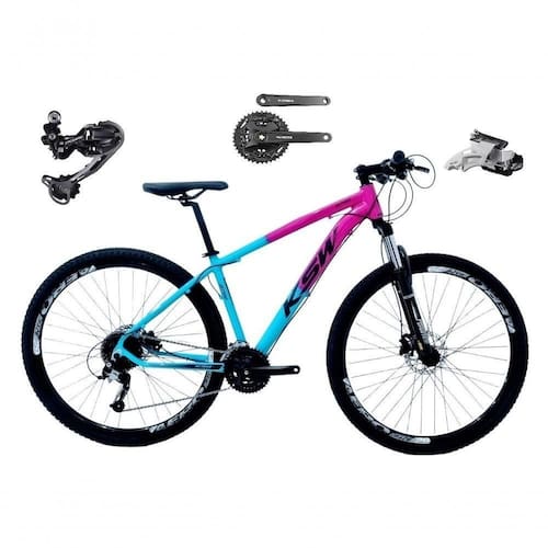 Bicicleta Aro 29 Ksw Xlt Câmbio Traseiro Shimano Deore E Altus 27v Freio Hidráulico Garfo Trava - Rosa/azul Tam.21