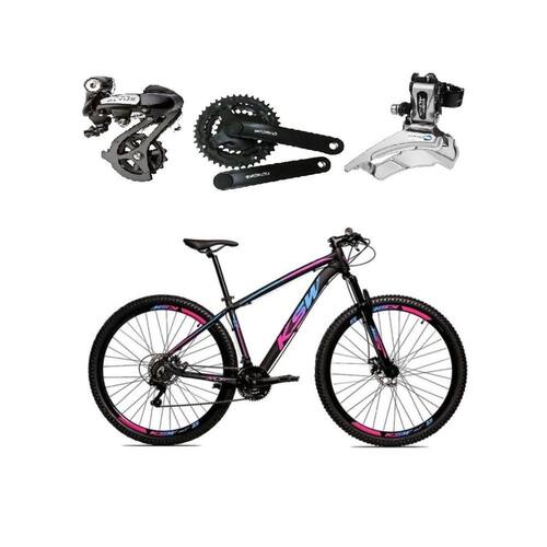 Bicicleta Aro 29 Ksw Xlt Câmbios Shimano Altus 24v K7 Alumínio Freios Hidráulicos Garfo Com Trava - Preto\Pink\Azul - TAMANHO 15