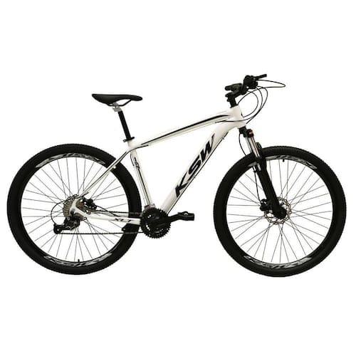 Bike aro 29, com quadro KSW XLT, nova na caixa a pronta entrega, produto com ótima qualidade e acabamento, possui 27 marchas com sistema de alavancas rapid fire que a cada clique uma marcha é trocada, Catraca do tipo k7 de encaixe com 9 velocidades, garfo com suspensão e sistema de Ajuste para melhor performance, sistema de freio a disco hidráulico, pneus com cravo baixo para uso em terra e asfalto. Bicicleta pré montada, vai precisar apenas fixar a roda dianteira, guidão, selim e pedais.Segue abaixo características da bike: