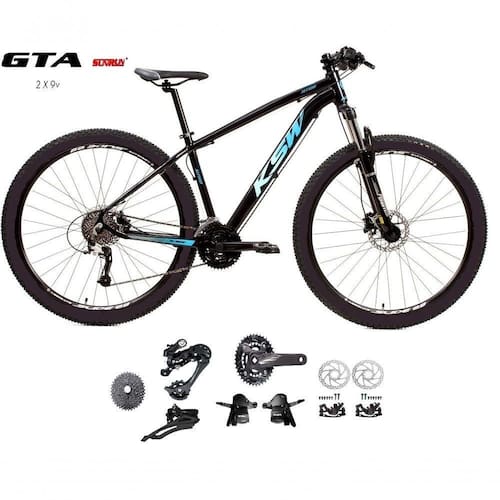 Bicicleta Aro 29 Ksw Xlt Kit 2x9 Gta Sunrun Freio Disco K7 11/36 Pedivela 24/38d Garfo Com Trava - Preto/azul Tam.21