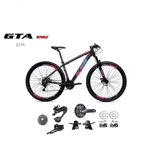 Bicicleta Aro 29 Ksw Xlt Kit 2x9 Gta Sunrun Freio Disco K7 11/36 Pedivela 24/38d Garfo Trava - Preto/pink/azul Tam.15