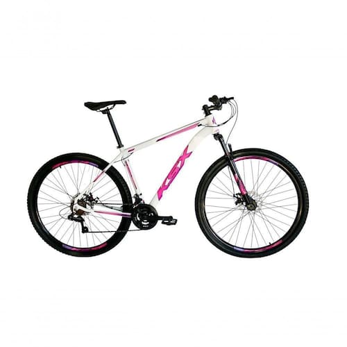 Bicicleta Aro 29 Ksx Sd7 21v Cabos Internos Alumínio Freios A Disco Garfo Suspensão Branco Rosa Violeta Tamanho 17