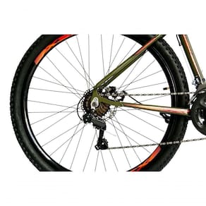 Bicicleta Aro 29 Ksx Sd7 21v Cabos Internos Alumínio Freios A Disco Garfo Suspensão Verde Militar Laranja Tamanho 19