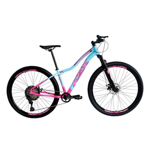 Bicicleta Aro 29 Ksx Sd7 Feminina 12v Garfo Com Trava K7 11/50 Freios Hidráulicos Kit 1x12 - Rosa/azul Tam. 15 Lançamento KSX SD7, melhor custo benefício pode comparar!! Kit Gta Rx de 1 x 12 velocidades, suspensão com trava no ombro, freios hidráulicos, bike vai praticamente pronta, mas precisamos tirar a roda dianteira, pedais, guidão e selim para embalar a bike na caixa, recomendamos que seja feita uma montagem final por um técnico para que se precisar fazer alguma regulagem específica, segue lista das peças que compõem a bike: quadro 29 KSX SD7