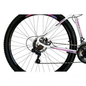 Bicicleta Aro 29 Ksx Sd7 Feminina 21v Cabos Internos Alumínio Freios A Disco Garfo Suspensão Branco Rosa Violeta Tamanho 15
