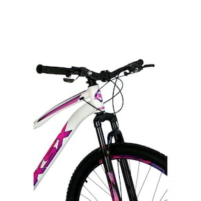 Bicicleta Aro 29 Ksx Sd7 Feminina 21v Cabos Internos Alumínio Freios A Disco Garfo Suspensão Branco Rosa Violeta Tamanho 17